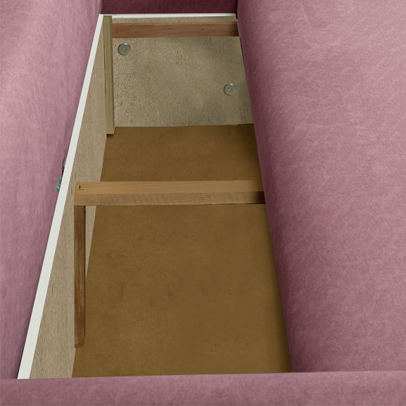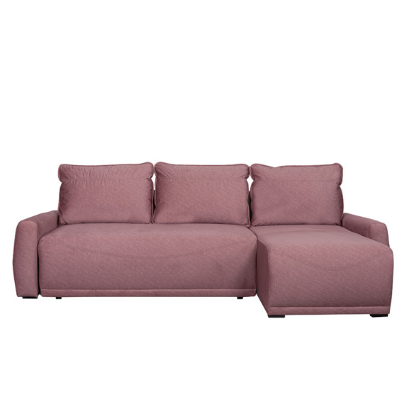 Colțar extensibil interschimbabil Lea, cu 5 locuri și ladă de depozitare, roz, 256(L)x158(A)x75(H) cm. Cu o suprafață generoasă de dormit (144 cm x 224 cm), acest colțar este realizat din lemn masiv de fag și panouri aglomerate din așchii de lemn. Confortul și rezistența în timp este asigurată prin folosirea arcurilor sinusoidale și a spumei poliuretanice de înaltă rezistență.