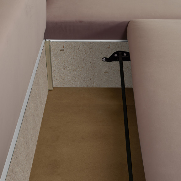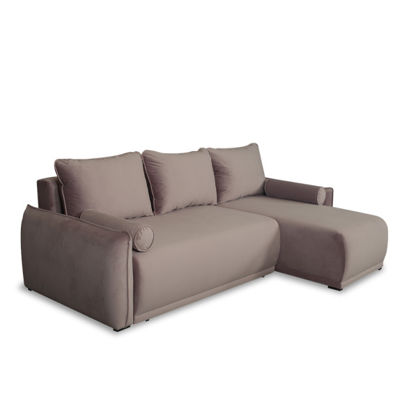 Colțar extensibil interschimbabil Vida, cu 5 locuri, ladă de depozitare, roz, având dimensiunile 256(L)x150(A)x75(H) cm. Dimensiunea suprafeței de dormit este de 144×224 cm, extensie Lift UP. Colțarul este realizat din lemn masiv de fag și PAL. Structura șezutului este din burete poliuretanic și arcuri sinusoidale.