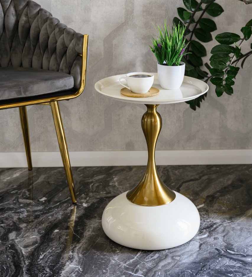 Măsuţă FEJ , alb Ivory/auriu, 38,3×53,5 cm