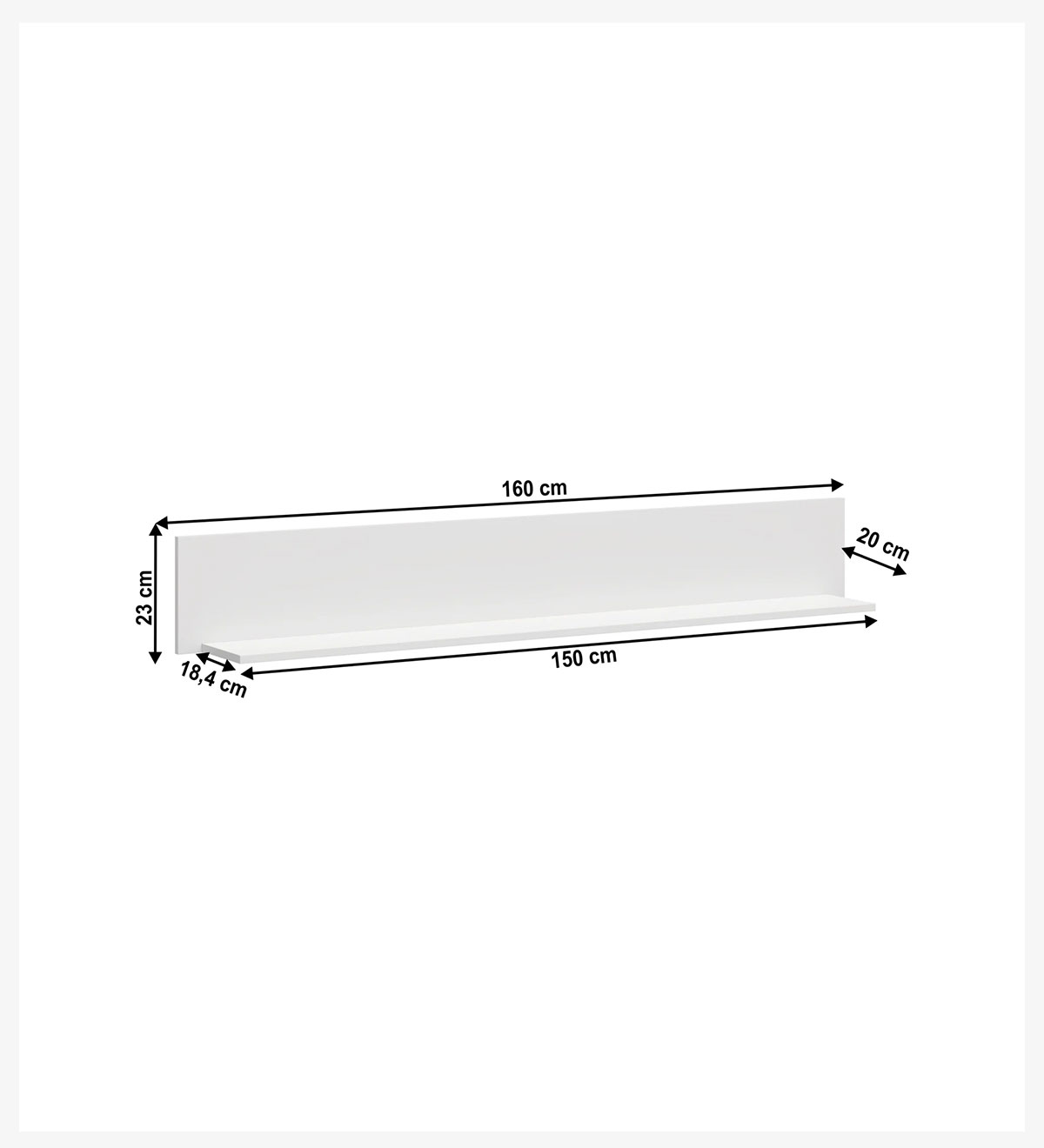 Culoare albă și dimensiuni 160x20x23 cm.
