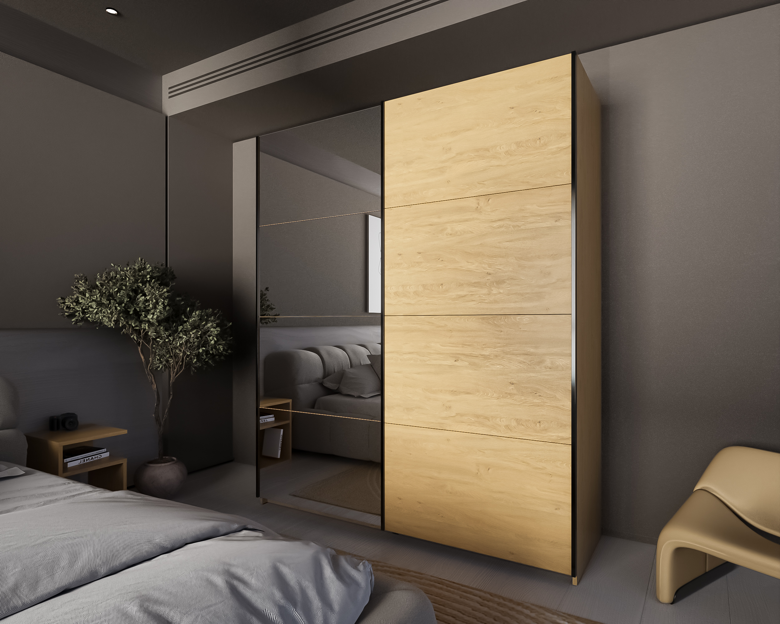 ZEGNA 2.00 cm Dulap 2 usi culisante oglinda/pal , stejar